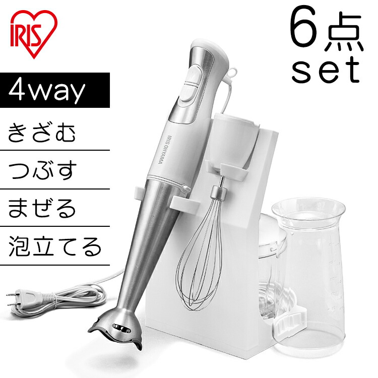 年最新海外 アイリスオーヤマ ハンドブレンダーセット 1台3役 つぶす まぜる きざむ Ihb 602 W 開店祝い Www Dukunoojamaicankitchen Com
